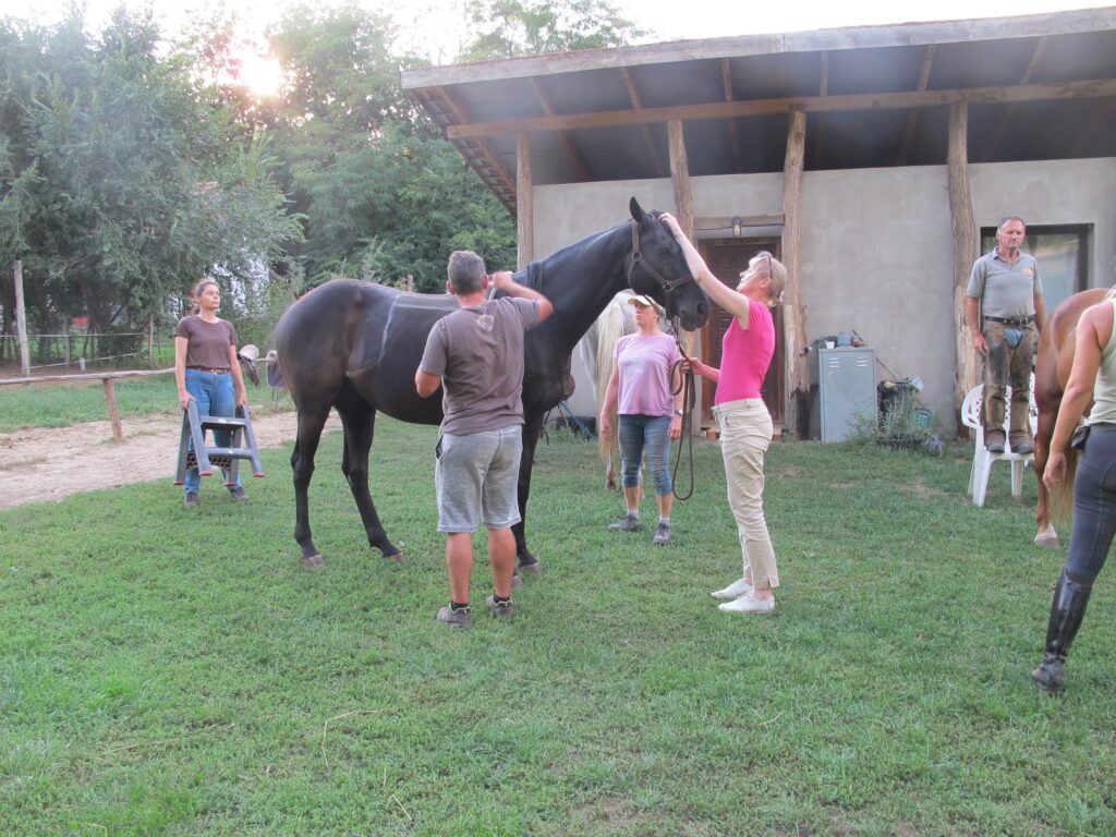 10 résztvevővel, 5 lóval, többféle 3D-s demonstrációval és gyakorlatokkal vizsgáltuk a nyereg, a ló és a lovas kapcsolatát.